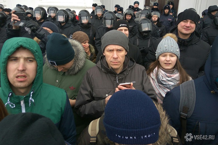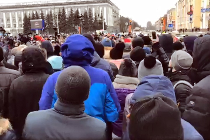 UPD (09:35): Участники митинга прорвали кордоны и пошли к администрации Кемеровской области.