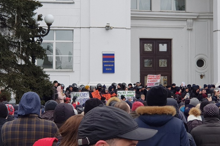 UPD (10:23) К протестующими продолжают выходить какие-то чиновники. Судя по крикам, к ним попытался обратиться и новый вице-губернатор Сергей Цивилёв.