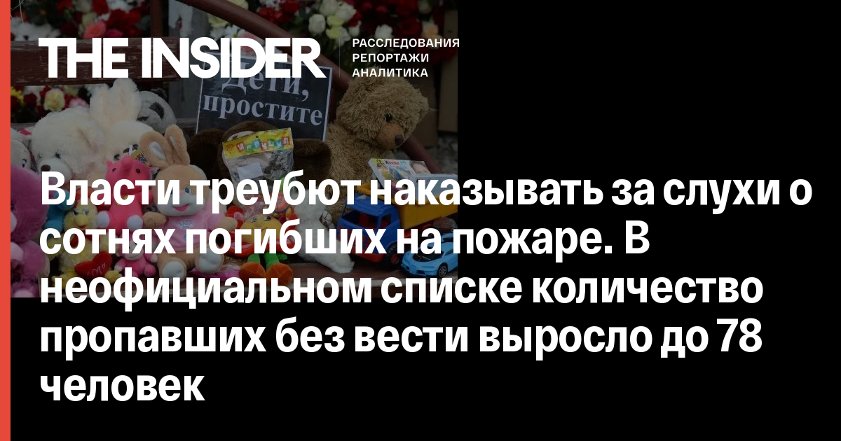 Власти треубют наказывать за слухи о сотнях погибших на пожаре. В неофициальном списке количество пропавших без вести выросло до 78 человек