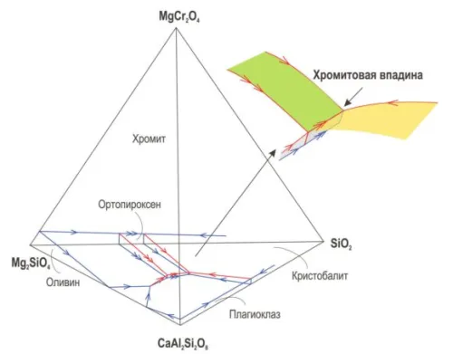 Фазовая диаграмма, описывающая состав хромитообразующих магм
