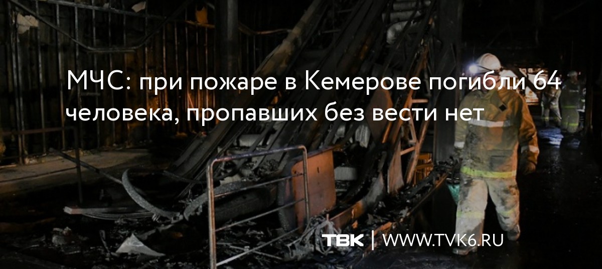 МЧС: при пожаре в Кемерове погибли 64 человека, пропавших без вести нет