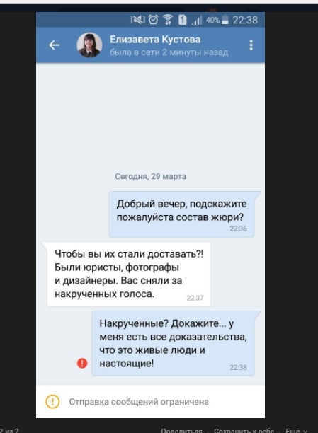 Как удалось выяснить, руководство конкурса всё же дало свои объяснения по поводу того, почему они не получили свои призы. Елизавета Кустова обвинила этих участников в накрутке голосов.