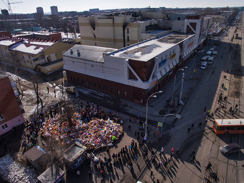 Пожар в торговом центре "Зимняя вишня" произошел 25 марта. Погибли 64 человека, среди них 41 ребенок. Еще 79 человек пострадали. Возбуждено уголовное дело по статьям 109, 219 и 238 УК РФ ("Причинение смерти по неосторожности", "Нарушение требований пожарной безопасности, повлекшее по неосторожности смерть двух и более лиц", "Оказание услуг, не отвечающих требованиям безопасности").