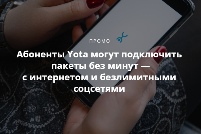 Мобильный оператор Yota предлагает новую услугу: теперь абоненты могут выбрать пакеты без минут — с гигабайтами и безлимитными соцсетями.
