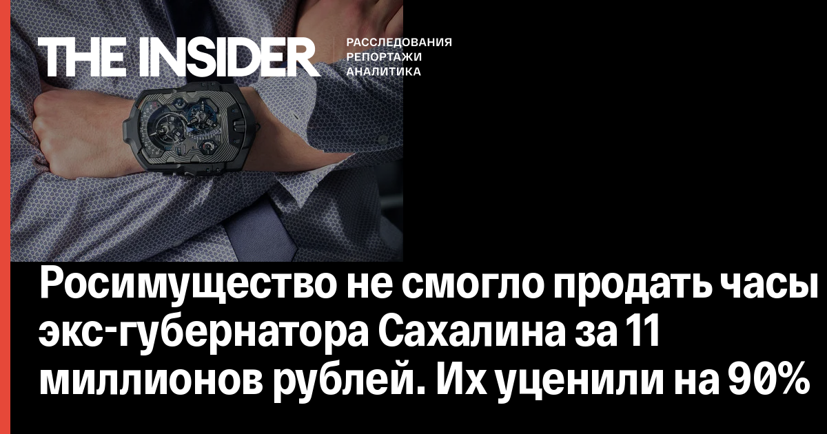 Росимуществу не удалось продать с аукциона конфискованные у бывшего губернатора Сахалина Александра Хорошавина часы. Как пишут «Ведомости», часы оценивались в 11,4 миллиона рублей, но поскольку желающих их приобрести не нашлось, цену снизили на 90%, до 1139290 рублей.