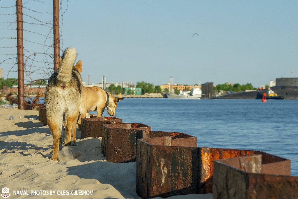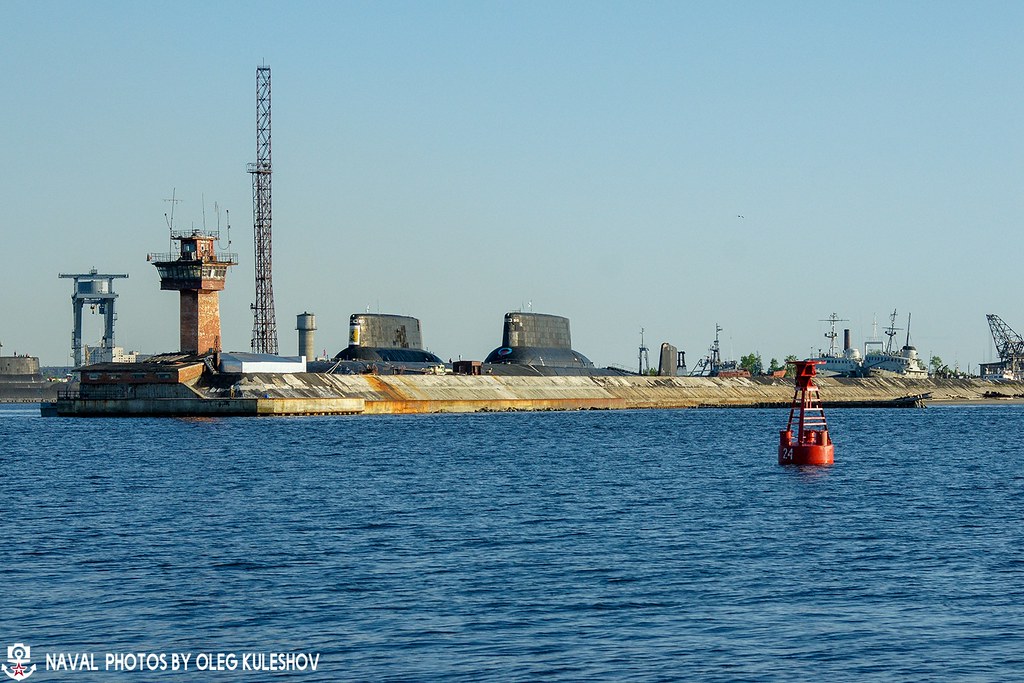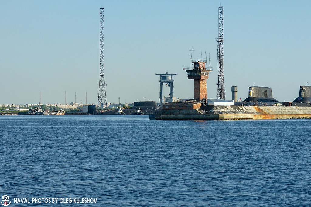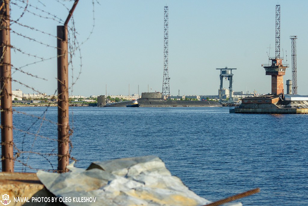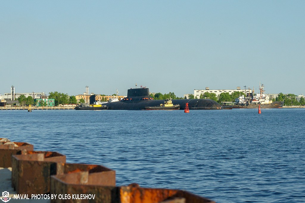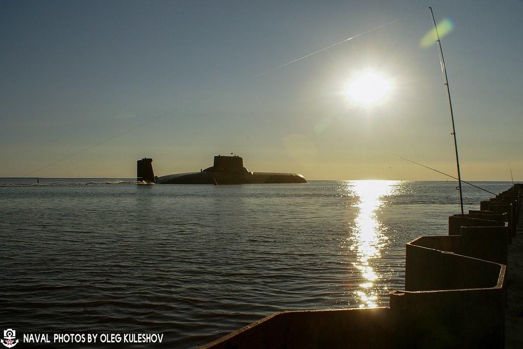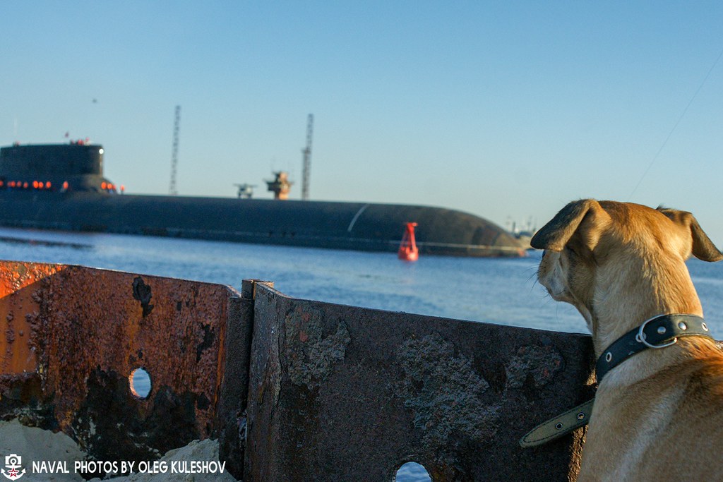 Ниже на фото будет не только подлодка, но и зрители: северодвинские псы и рыбаки. Гигантскому ракетоносцу сложно выходить самой из небольшой акватории порта, поэтому ему помогают буксиры: севмашевский "Иван Харитонов", звёздочкин "Витязь" и ещё несколько, названия которых я поздабыл.