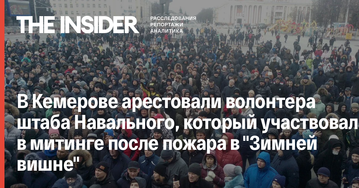 В Кемерове арестовали волонтера штаба Навального, который участвовал в митинге после пожара в "Зимней вишне"