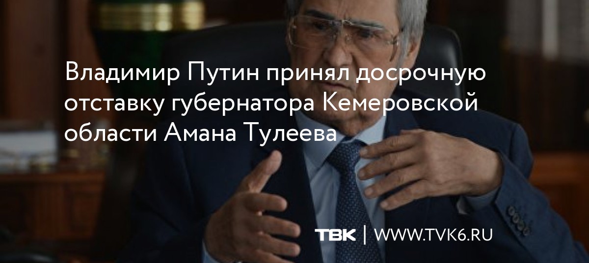 «Губернатор Кемеровской области Аман Тулеев обратился к президенту РФ Владимиру Путину с заявлением об отставке по собственному желанию» , – заявили в пресс-службе Кемеровской области.