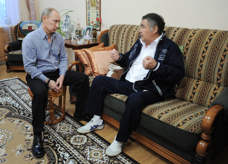 Владимир Путин в доме Амана Тулеева, который проходит послеоперационную реабилитацию, 2012. Фото: Алексей Дружинин / РИА Новости