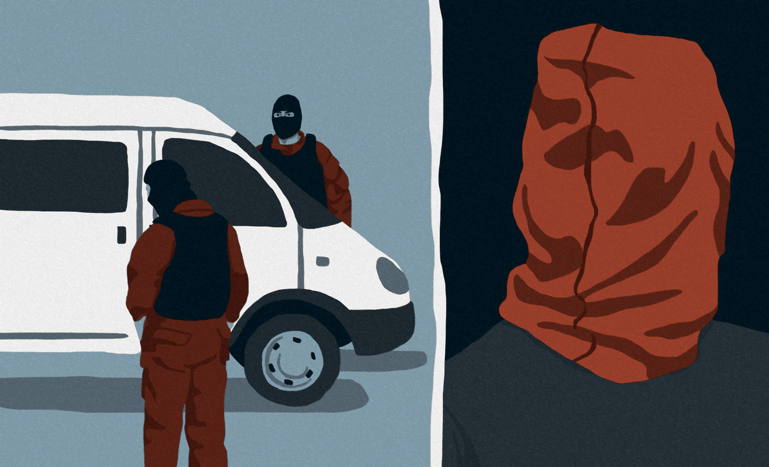 Пока Парвиз выбирал шланг в «Леруа Мерлен», ему позвонила беременная жена. «Она говорит, что нам надо ехать УЗИ делать. Я говорю, хорошо, сейчас где-то полпервого, я через полчаса буду», — вспоминает Парвиз. Выйдя на парковку перед магазином, он увидел рядом со своей машиной «Газель» с тонированными стеклами. «Чувствую, что-то не то», — признается он. Из «Газели» выскочили четверо или пятеро мужчин в масках, которые с криками «Лежать!» повалили его на землю: «Мне мешок на голову надели, наручники, в "Газель" кинули. Я говорю: "Ребята, в чем дело?" — "Молчи, заткнись". Били меня ногой в бутсе, рукой».