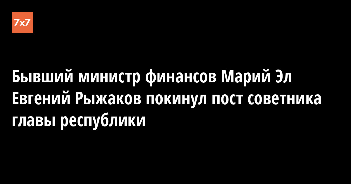 Бывший министр финансов Марий Эл Евгений Рыжаков с апреля не является советником главы Марий Эл. Эту информацию он сам подтвердил корреспонденту «7x7». Рыжаков объяснил свой уход решением сосредоточиться на научно-преподавательской деятельности в Поволжском государственном технологическом университете.
