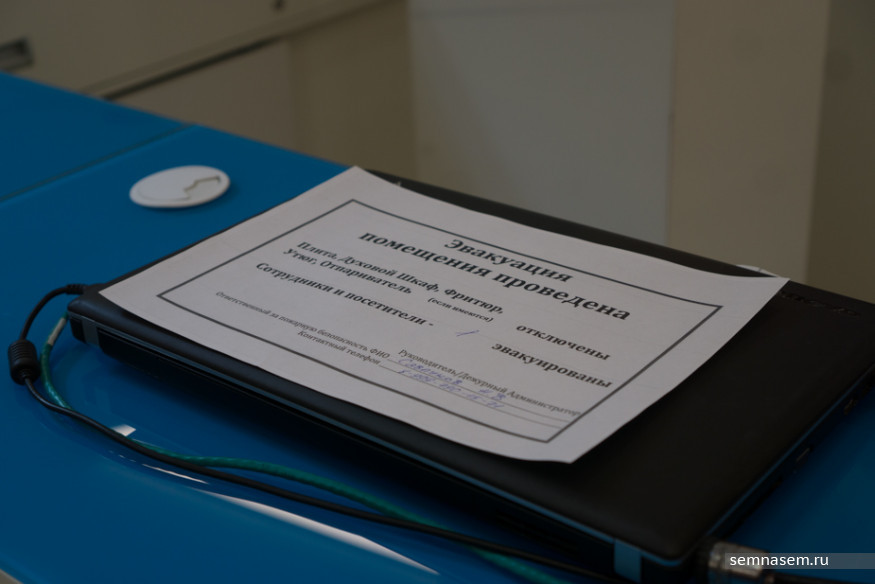 Ровно в 10:30 механический голос объявил тревогу и через три минуты повторил ее, добавив словосочетание «код две тысячи». Сотрудники охраны организованно направили людей к выходам, атриум сразу опустел. Корреспонденты «7x7» сначала решили избежать такого быстрого развития событий, но охранники настойчиво всех проводили к эвакуационному выходу.