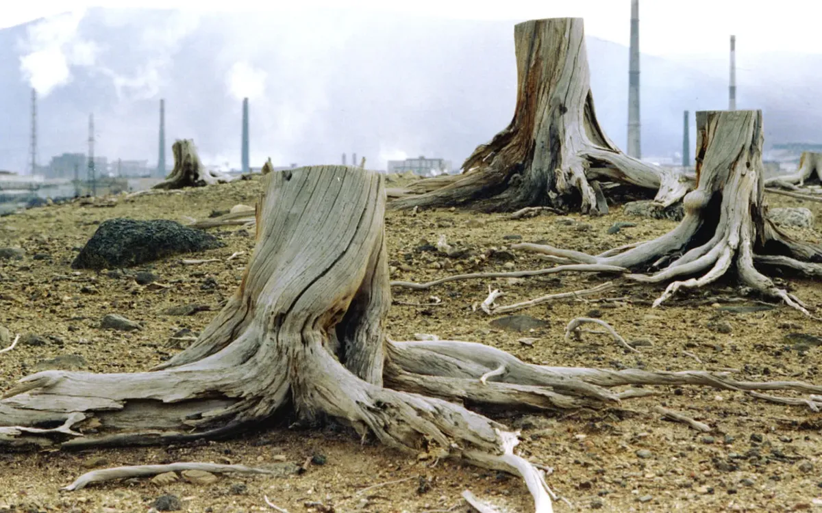 Диоксид серы в таком превышении — это онкология, сердечно-сосудистые заболевания, интоксикация всего живого, заражение почв. Диоксид серы — это лунные пейзажи вокруг промышленных предприятий. Такой же лунный пейзаж можно наблюдать близ Мончегорска — комбинат «Североникель», ныне принадлежащий «дочке» «Норникеля» — Кольской горно-металлургической компании, — автор этого пейзажа. Здесь из файнштейна выплавляют никель и медь, а также производят серную кислоту.
