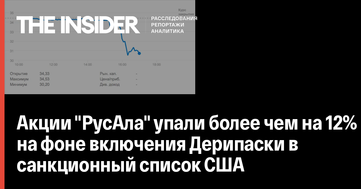 Акции "РусАла" упали более чем на 12% на фоне включения Дерипаски в санкционный список США