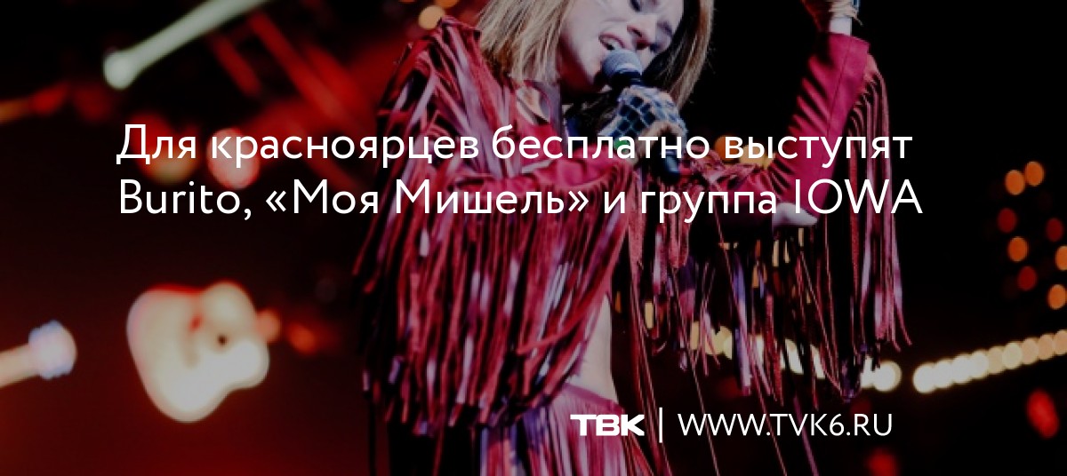 Для красноярцев бесплатно выступят Burito, «Моя Мишель» и группа IOWA