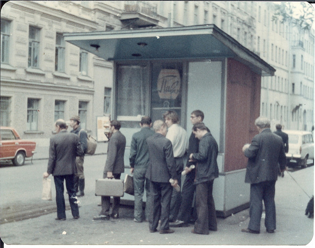 Это была одна из важнейших примет советской повседневности. Такой ларек стоял в полусотне метров от нашего общежития. Мы называли его "капканом": студент с утро встает с чистыми намерениями посвятить себя науке, а на пути этот капкан. Не все могли пройти мимо, а остановившись, удовлетвориться только одной кружкой "Жигулевского".