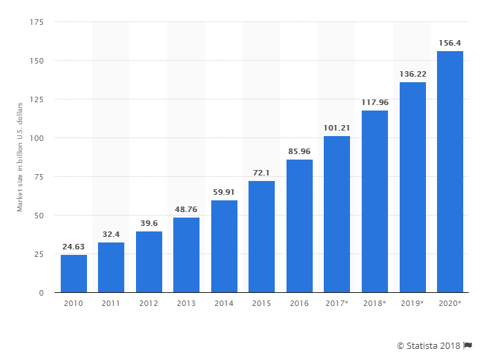Рынок облачных решений в 2010-2020 годах, $ млрд