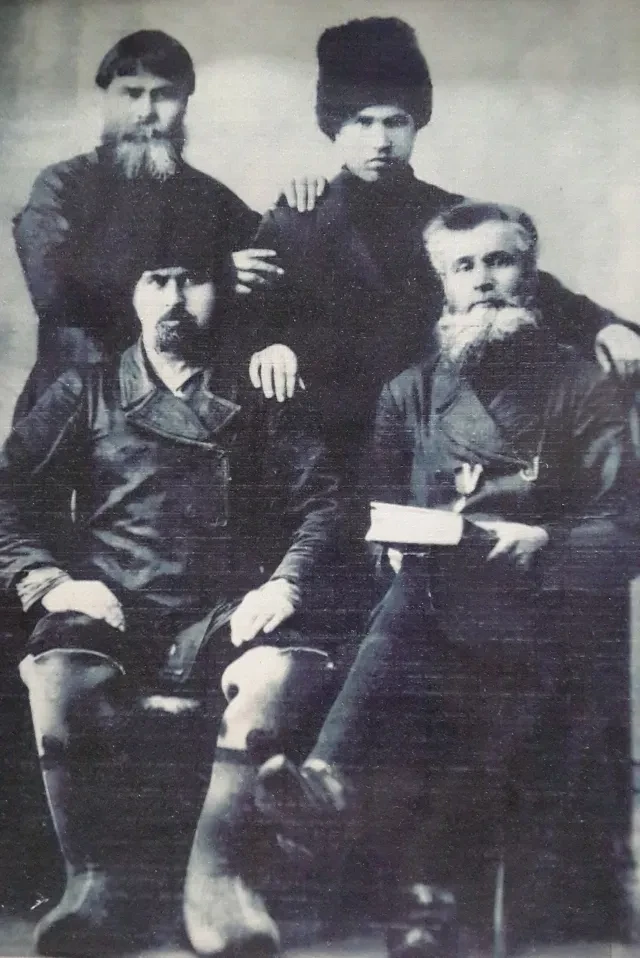 Что-то мне это напоминает, Яков как раз показывает родословную — с XVIII века и Невьянского завода на границе Европы и Азии. Потом крепкая деревня Мишкино (ныне райцентр Курганской области), потом побег от коллективизации в Нарымский край (Томская область). Рубят заимку Мошкино (в документах НКВД заимка Голдобиных). Прадеда Григория (для общества он вроде епископа, в пяти селах — духовный отец, крестил, венчал) расстреливают в Колпашевском яру в 1940-м, деду Корнилию дают 10 лет лагерей и 5 — поражения в правах. В Первую мировую его ранили в правую руку (Яков показывает фото прадеда и деда как раз 1914 года перед отправкой Корнилия на фронт — он уже обритый, надел папаху). И он, к физическому труду не годный, учительствовал. А в тюрьме в Мариинске работать не смог. Урезали пайку, помер от голода. Другие родственники уходят в часовенные скиты, а сами скиты, начавшиеся на Урале, уходят все дальше на северо-восток, теперь с Оби на левобережье Енисея, на Дубчес, Дунчес, Теульчес. В 1951-м достают и там: войсковой отряд, руководимый красноярским УМГБ, ликвидирует два мужских монастыря и четыре женских; скиты, иконы, книги сжигают, пустынников увозят в красноярскую тюрьму. 25 лет получает двоюродный дед Александр, его дочь Ирина сумеет сбежать из-под конвоя еще на Севере. Брата отца находят в Норильске, сажают на 10 лет. Хоть прадед Григорий и учил, что под угрозой расстрела не стоит ничего скрывать, все же дети его, когда из них выбивали показания на родню, темнили, недоговаривали, «ошибались» в адресах и именах. Яков на свет появляется в Туве, в истоках Енисея, потом — тайшетская тайга (Иркутская область), в Сергеево приплывают на плотах, когда ему 14 лет.