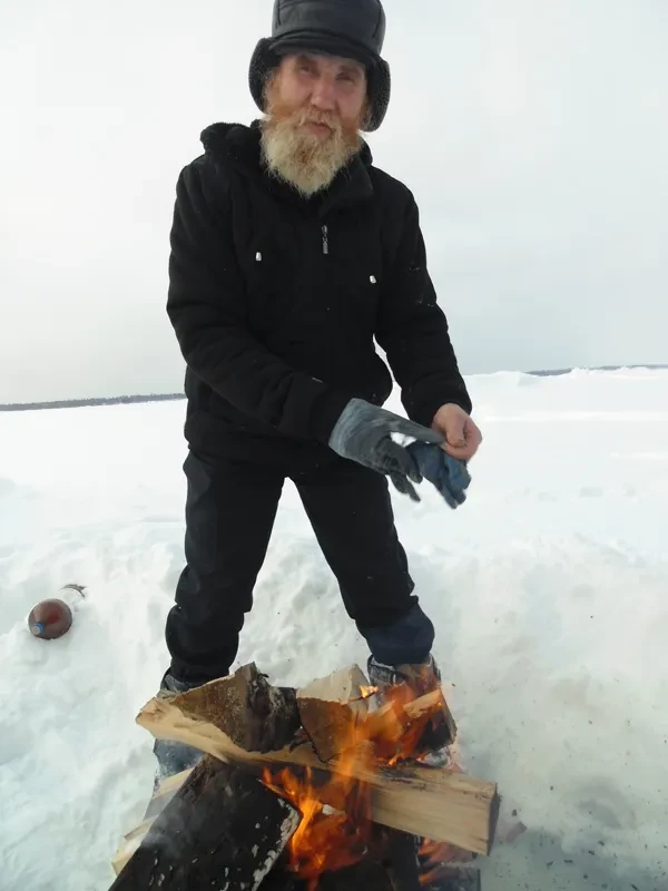 Вторая половина марта, но северное солнце меньше и тусклей луны, никелевая копейка, тот пленочный глаз, с утра минус 30, и решаем ехать проверять уды на налима ближе к полудню — потеплеет. Пока Яков Голдобин, старообрядец-часовенный, среди своих — либерал-бунтарь, книжник, мыслитель («хочется понять правильность событий») и заправщик топливом лесовозов, делится переживаниями.
