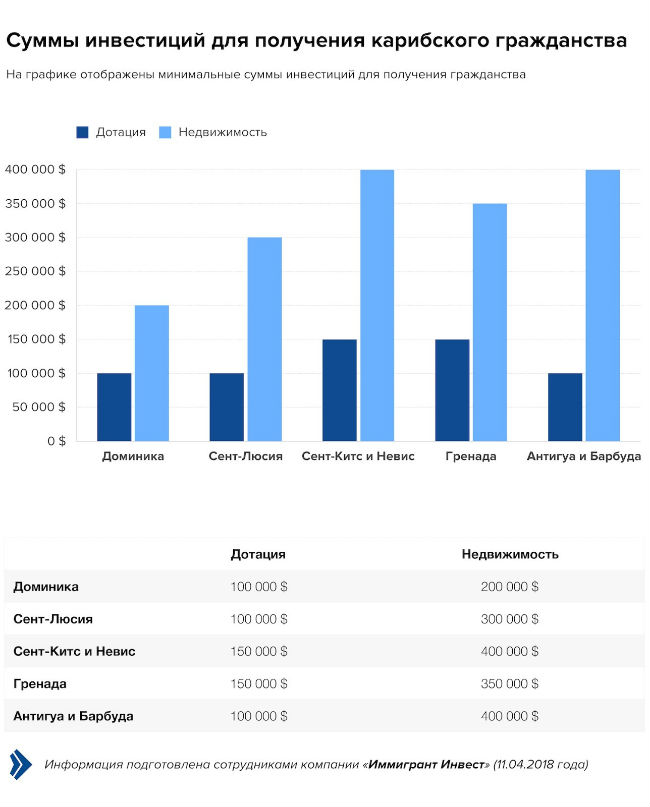 Гражданство можно получить, сделав взнос 250 тысяч долларов в Фонд диверсификации сахарной промышленности. За семью из 4 человек в этом случае нужно заплатить 300 тысяч долларов.