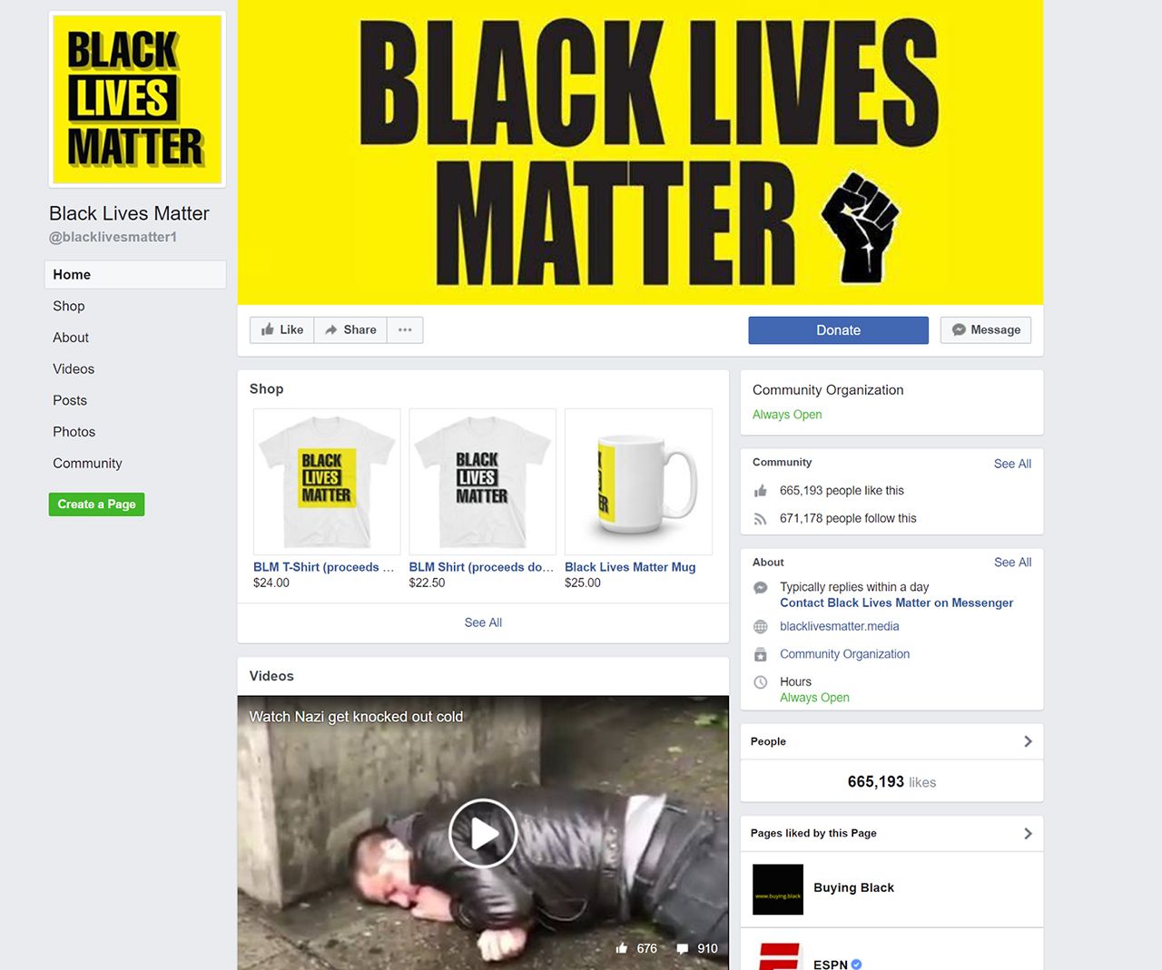Первым на самую популярную страницу Black Lives Matter в фейсбуке обратил внимание независимый журналист-расследователь Джереми Масслер в декабре 2017 года. Он отметил, что у страницы не было голубой галочки верификации, хотя на нее подписались почти 700 тысяч человек — это вдвое больше, чем у официального аккаунта Black Lives Matter. Страница продавала сувениры с символикой движения (футболку или кружку можно было купить за 25 долларов) и была связана с несколькими кампаниями по сбору средств через краудфандинг-платформу DonorBox — якобы на нужды Black Lives Matter.