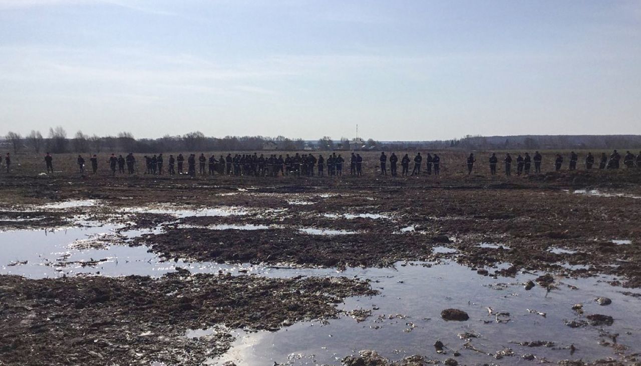 Когда женщина приехала на поле в понедельник, 9 апреля, там, по ее словам, все еще не было оцепления: «Стоит трупный запах, как в мясном цехе, куда ни глянь, небольшие фрагменты — маленькие косточки, кусочки кожи». Синицына увидела на поле белый автобус МЧС и сотрудников ведомства; один из спасателей сказал, что их около 100 человек, хотя, по оценке Синицыной, сотрудников было «точно меньше».