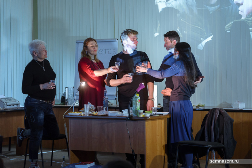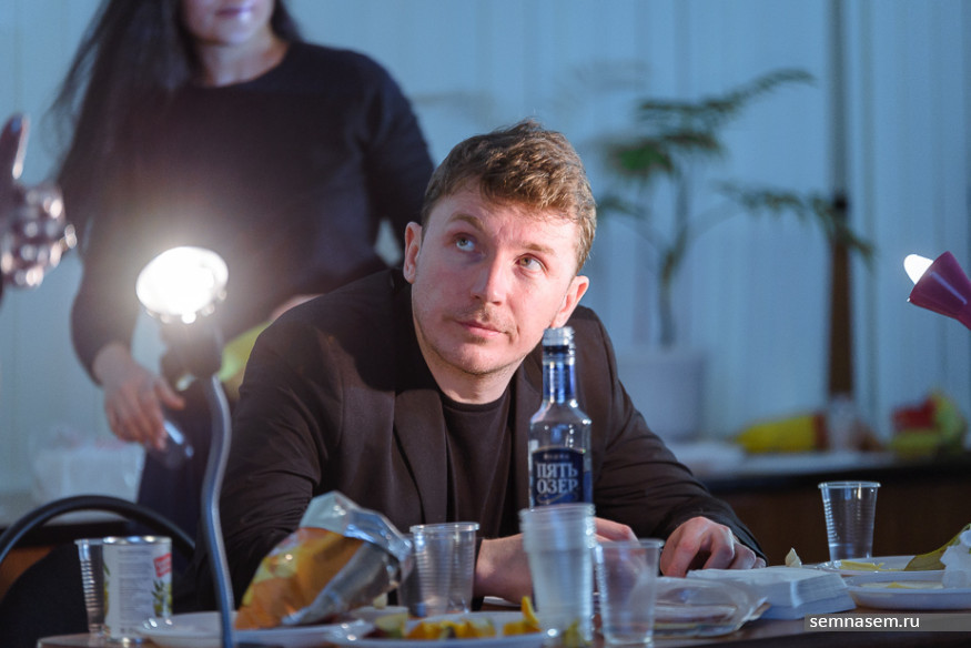 — Сначала спектакль строился по принципу азбуки. Было вытягивание билетов, но герои не были персонифицированы. Просто пользовались цитатами. Но мы потом от такой формы отказались. Пришли к этой вот вечеринке. Потому что зрители сказали, что хотят видеть цельного человека, а не раздробленного на цитаты.
