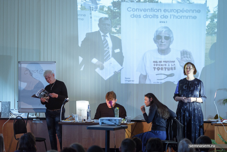 — Не всегда, но когда мы спектакль придумывали и предполагали, что он будет ездить в регионы, хотели, чтобы в дискуссии были задействованы местные правозащитники и чтобы люди, которые приходят, их узнавали и как-то с ними знакомились. В Новосибирске и Барнауле нас приглашали просто культурные площадки. И никаких правозащитников среди организаторов не было, хотя они есть в этих городах, конечно. Как мне кажется, соединение нас — актеров, местных правозащитников и какого-то культурного сообщества города — это, наверное, самое идеальное.