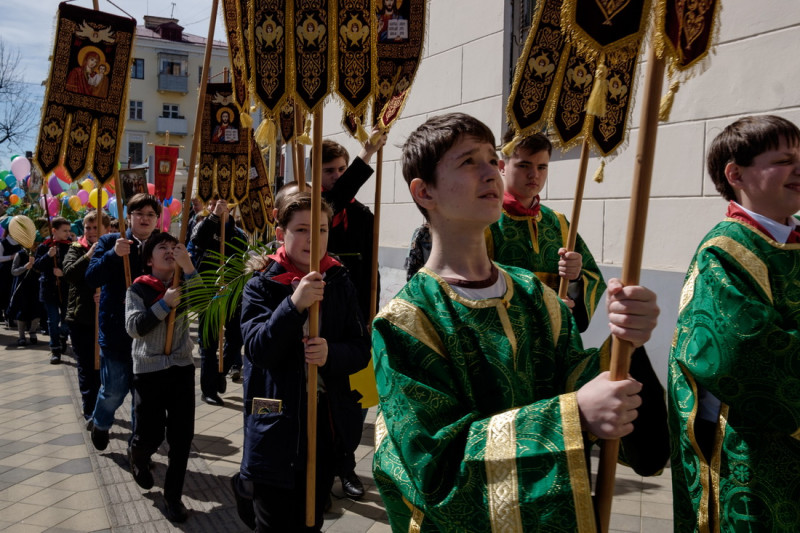 Один из свежих примеров — детский пасхальный крестный ход 2018 г., в котором приняли участие дети с красными галстуками и православными хоругвями. Ленин в мавзолее переворачивается в гробу. Он был мастер диалектики, но синтез атеизма как атрибута коммунизма и религии ему и присниться не мог.
