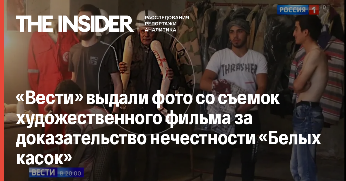 Программа «Вести» в очередной раз попыталась доказать, что видеосвидетельства химических атак в сирийском городе Дума 7 апреля 2018 года и в городе Хан-Шейхун год назад — фальшивки. Ведущий Эрнест Мацкявичюс так предваряет сюжет, озаглавленный «Каски сорваны»: «Очередной вброс ”Белых касок“, как ”доказательство химической атаки в Думе“, сделан по всем канонам плохосрежиссированной фальшивки. Это стандартные приемы, на которых псевдо-волонтеров ловили уже неоднократно» <здесь и далее орфография и пунктуация сайта ”Вестей“ сохранены. — The Insider>. Затем обозреватель Татьяна Ремезова рассказывает: