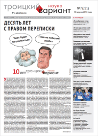 Весь номер газеты «Троицкий вариант — Наука» № 251 от 10 апреля 2018 года в PDF