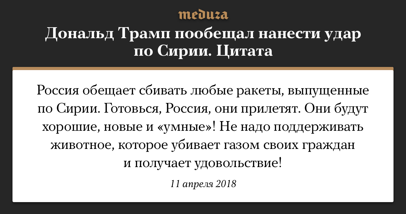 11 апреля. Трамп пообещал России нанести удар по Сирии