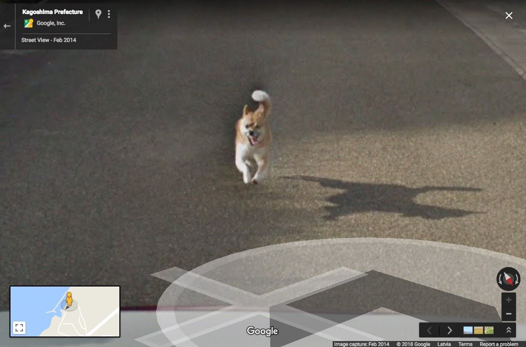 В конце января в сервисе Google Street View, который позволяет смотреть панорамы улиц многих городов мира, появились снимки японского острова Танэгасима. А на них — маленькая рыжая собака!