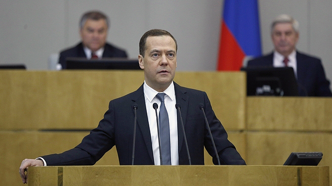 Председатель правительства Дмитрий Медведев выступает в Госдуме с ежегодным отчетом Фото: government.ru