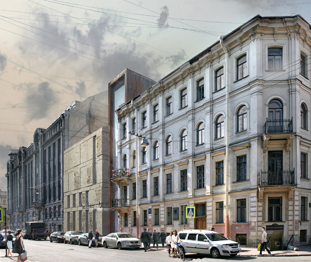 Первый проект нового здания еще в 2016 году специально для Музея Достоевского создало архитектурное бюро «Евгений Герасимов и партнеры». Герасимов — петербургский архитектор и один из учредителей фонда «Петербург Достоевского».