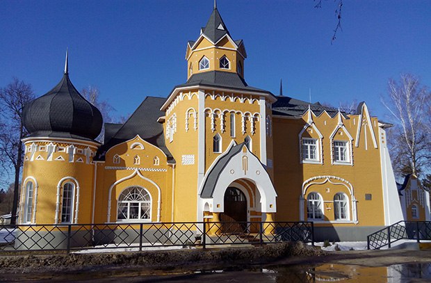 Главный дом усадьбы с диковинными башенками и куполами сочетает в себе черты сразу нескольких модных в начале ХХ века стилей: так называемого русского, экзотического восточного направления эклектики – неомавританского и набиравшего популярность модерна.