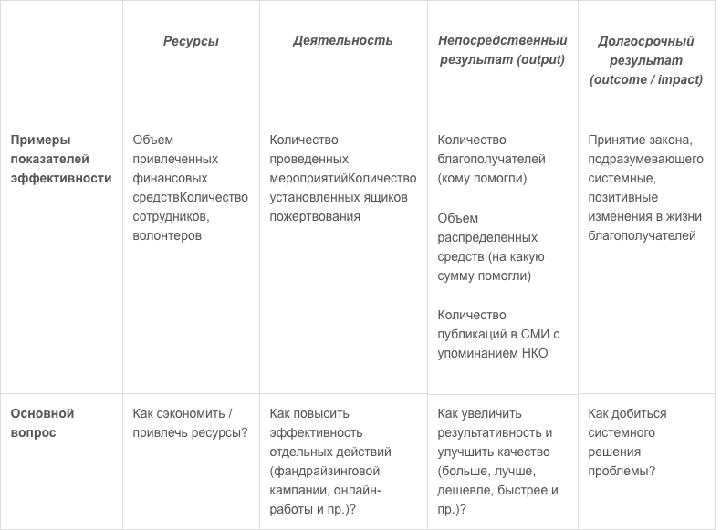3. Финансы и иные ресурсы. Эффективность фандрайзинга – один из ключевых критериев оценки деятельности НКО. В большей степени распространены абсолютные, количественные показатели: