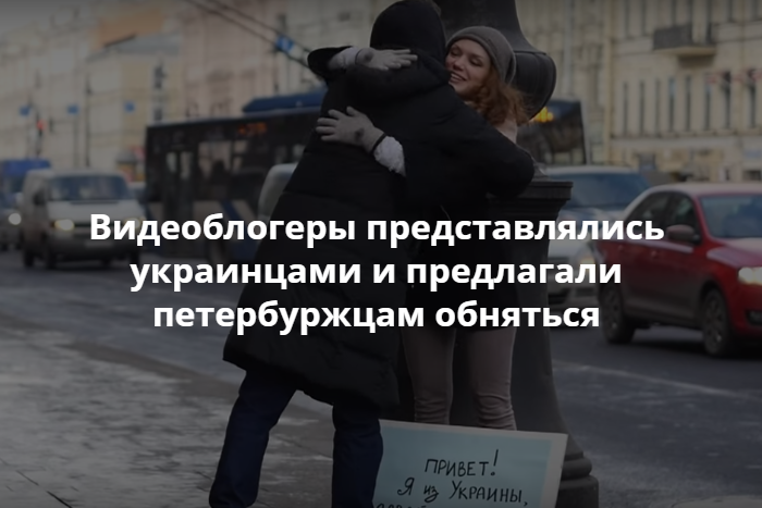 Видеоблогеры с YouTube-канала Troyban Show провели эксперимент, во время которого представлялись украинцами и предлагали петербуржцам обняться.