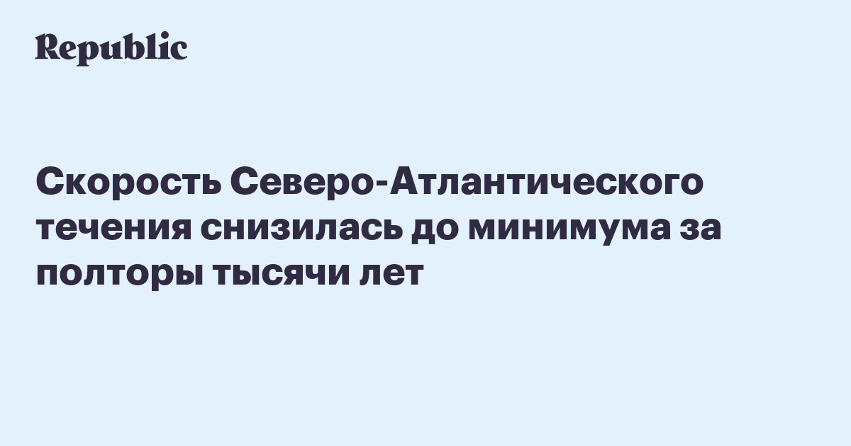 Скорость Северо-Атлантического течения снижается последние 160 лет (примерно с 1850 года). Сейчас его скорость достигла минимума за полторы тысячи лет. Об этом сказано в работе, опубликованной в Nature.