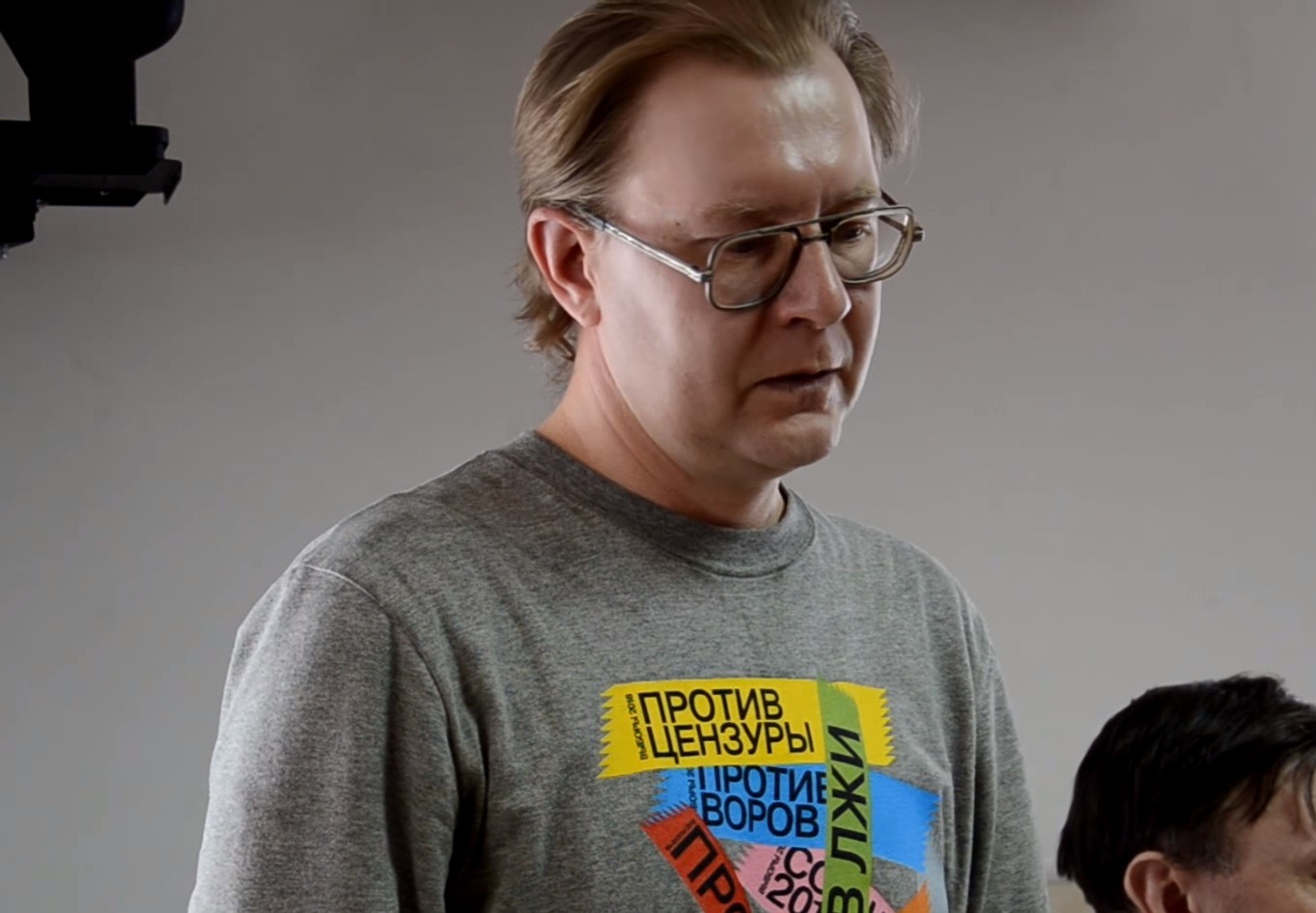 Последнее слово в суде Александр Бывшев произносил, одетый в серую толстовку с надписями: «Против цензуры», «Против воров», «Против лжи», «Против Путина». Видео: «Грани.ру» (отдельное спасибо РКН)