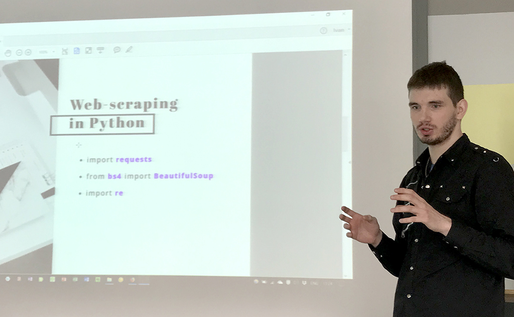 Эксперт митапа, Эскендер Джемадинов, магистр факультета экономики, менеджмента и бизнес-информатики НИУ ВШЭ, Пермь, рассказал о теоретических основах сбора данных и показал на практике возможности языка Python.