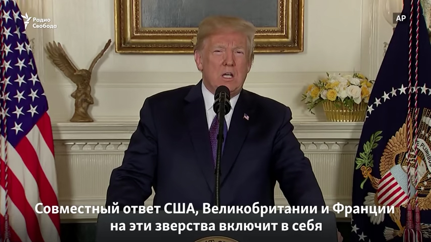 В ночь с пятницы на субботу США, Великобритания и Франция, как и обещали в Вашингтоне, нанесли ракетный удар по Сирии. Поводом для атаки стало предполагаемое использование химического оружия сирийскими военными против гражданских лиц в Восточной Гуте (пригороде Дамаска) в начале апреля. Дональд Трамп заявил в пятницу вечером, что инцидент в Восточной Гуте свидетельствует о «значительной эскалации» применения сирийским режимом химического оружия. Это дело рук не человека, а преступления монстра, отметил Трамп в своей речи. Подтверждений от независимых экспертов, применялось или нет химоружие в Восточной Гуте, пока нет. Группа экспертов Организации по запрещению химического оружия прибыла в Сирию как раз в минувшую пятницу.