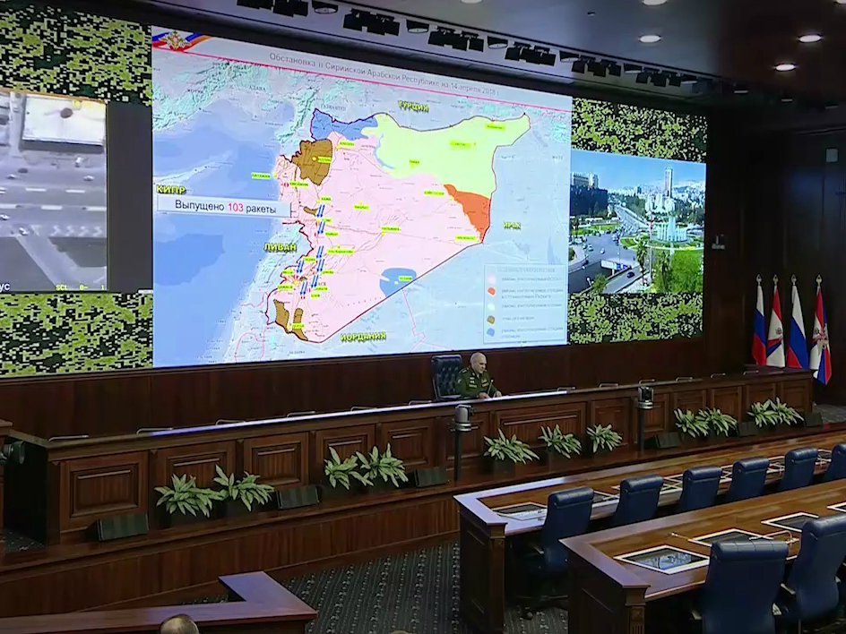 «Самолеты F-15, F-16 применили ракеты воздух-земля, самолетами «Торнадо» британских ВВС выпущено восемь ракет Scalp EG. Сирийскими средствами ПВО, основу которых составляют комплексы противовоздушной обороны советского производства, успешно отражены удары авиационных и морских средств поражения», — сообщил на брифинге первый замначальника Генштаба ВС РФ, начальник Главного оперативного управления Генерального штаба генерал-полковник Сергей Рудской.