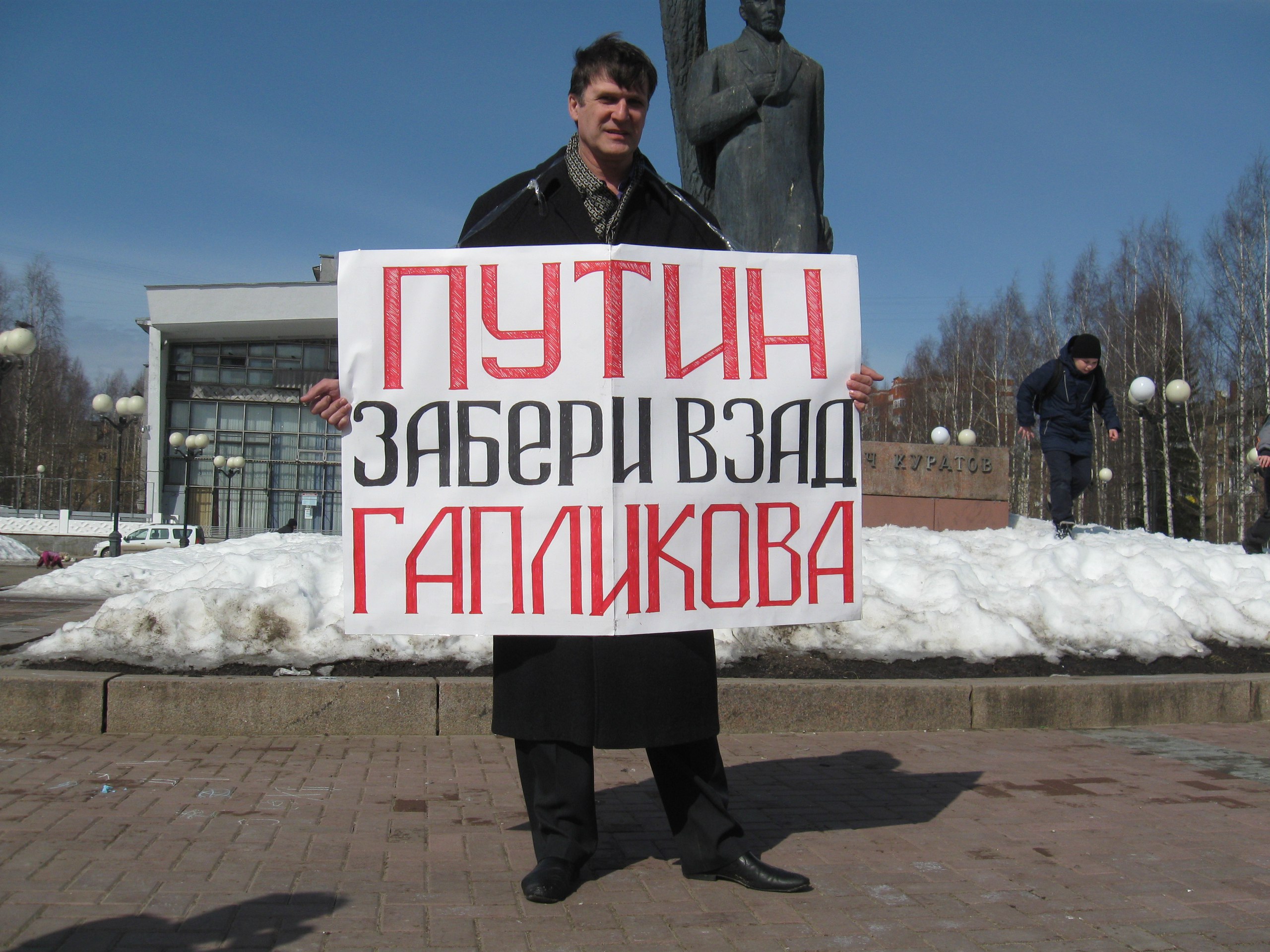 Член огрсовета ОСО Александр Щиголев вышел сегодня, 14 апреля, на одиночный пикет с требованием к президенту РФ отозвать полномочия Главы Республики Коми Сергея Гапликова.