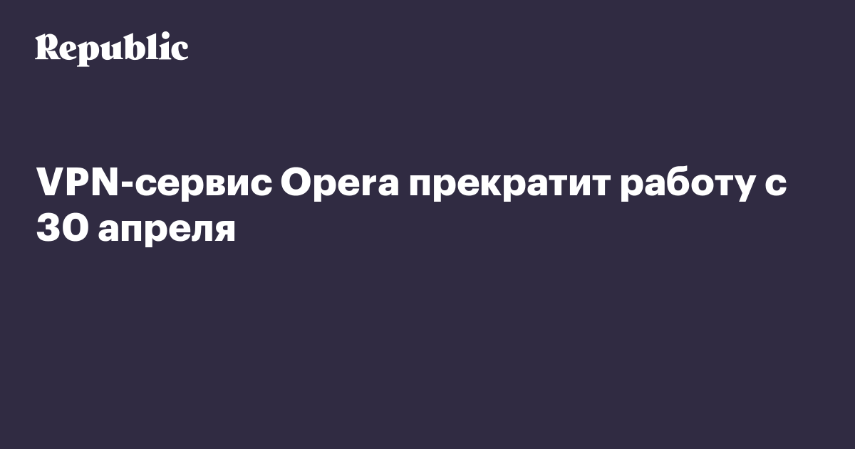 Бесплатный сервис Opera VPN, позволяющий обойти блокировки сайтов, прекратит работу с 30 апреля. Об этом говорится в сообщении на сайте сервиса.
