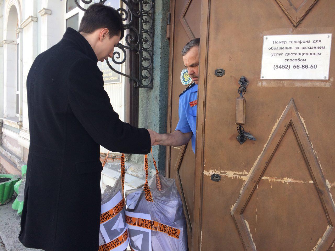 Активисты тюменского отделения движения "Открытая Россия" выразили вчера протест против блокировки мессенджера Telegram. Активист Данил Дегтярев принес в региональное надзорное ведомство сотни бумажных самолетиков – символ мессенджера – с надписью "Роскомпозор".
