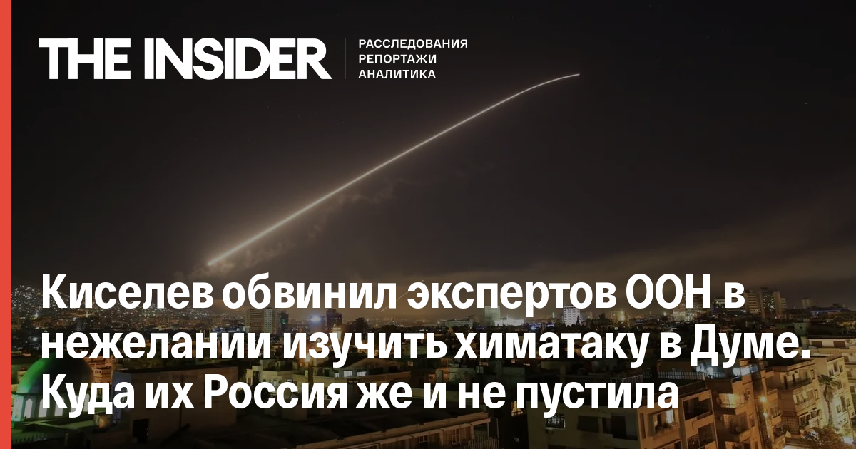 Киселев обвинил экспертов ООН в нежелании изучить химатаку в Думе. Куда их Россия же и не пустила