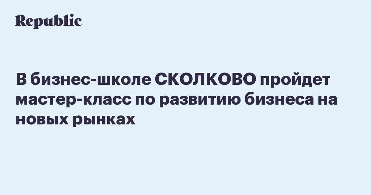В бизнес-школе СКОЛКОВО пройдет мастер-класс по развитию бизнеса на новых рынках
