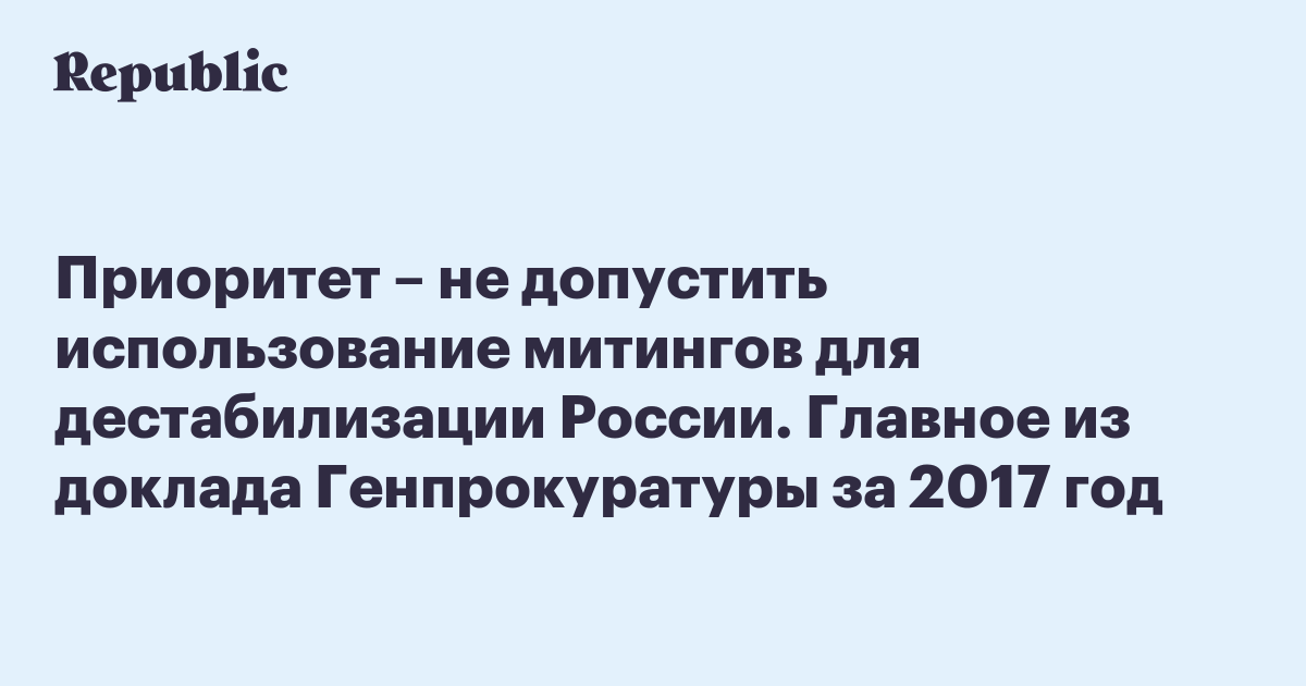 Приоритет – не допустить использование митингов для дестабилизации России. Главное из доклада Генпрокуратуры за 2017 год