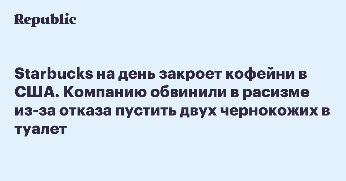 Сеть кофеен Starbucks объявила о закрытии нескольких тысяч своих кофеен в США на один день для проведения инструктажа работников на тему борьбы с расизмом. Компания приняла такое решение после скандала, который начался после того, как из одной из кофеен в наручниках увели двух чернокожих.